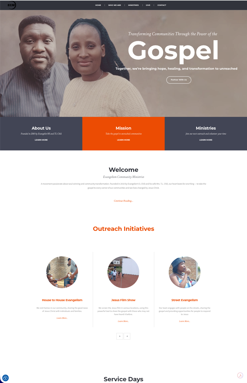 Evangelism Community Ministries is a South African ministry founded in 2010 with a bold mission — taking the gospel to unreached communities through house-to-house evangelism, outreach programs, and community transformation. They needed a website that could clearly communicate who they are, showcase their ministries, attract volunteers, and make it easy for supporters to give online. I built a warm, faith-filled multi-page WordPress site that tells their story powerfully, outlines their ministry arms, and gives donors and partners a simple, trustworthy way to get involved. A site built to serve a mission that goes far beyond the screen.